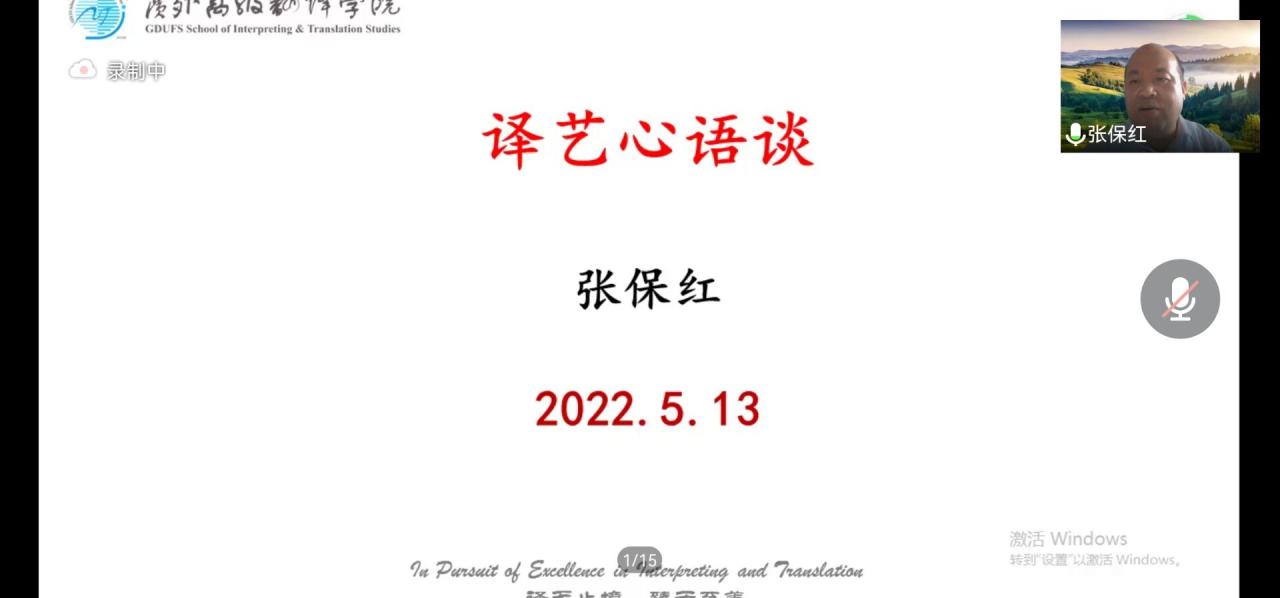 2022年5月13日下午,ylzzcom永利总站线路检测邀请任教于广东外语外贸大学高级翻译学院的张保红教授进行了一场题为“译艺心语谈”的线上讲座。讲座由ylzzcom永利总站线路检测冯军副教授主持。
