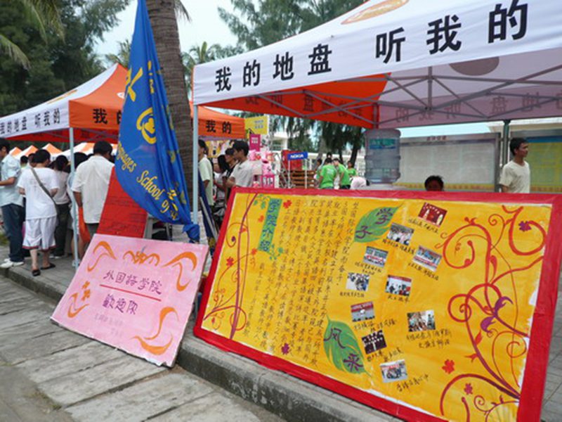 来到大本营,一片人山人海,一路上各院系别出心裁的标语牌格外抢眼。沿路走来,映入眼帘的是一块粉底背景,橙色花边,映显着几个整洁、大气的紫色大字——“ylzzcom永利总站线路检测欢迎你”的标语板。右旁还有简介ylzzcom永利总站线路检测的布告栏及一块绸红底的流程图板。左旁是院团委及院员工会的办公桌。新生沿路走来就可以按标牌将手续办完。这样的设置,充分彰显海大及公司人性化的一面。