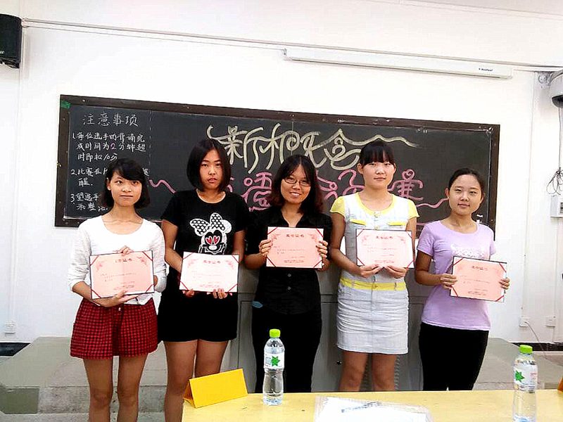 比赛开始前,主持人在热烈的掌声中隆重介绍了出席本次大赛的四位评委老师,短暂介绍比赛规则后,比赛正式开始。大赛气氛随着比赛的热烈进行渐趋激烈,田玮同学最终以响亮地道的美式发音,饱满的感情,流畅的背诵,力挫群雄,勇夺一等奖,蒋海燕、宋颂等同学也以精彩表现荣获二、三等奖。随后,四位评委老师以地道流利的英语为本次大赛的落幕致辞,并给参赛选手提出宝贵的学习意见。最后,大赛在获奖选手与老师的合影留恋中画上圆满句号。